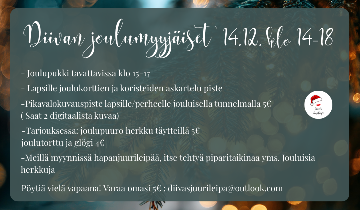 Lue lisää- 13.12.2025–13.12.202516:00–22:00
