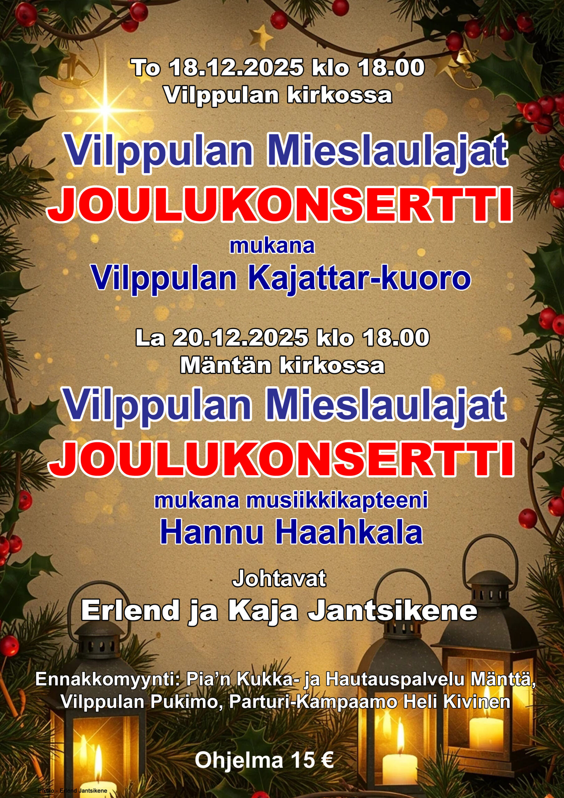 Vilppulan Mieslaulajat JOULUKONSERTTI Vilppulan kirkossa, mukana Vilppulan Kajattar-kuoro